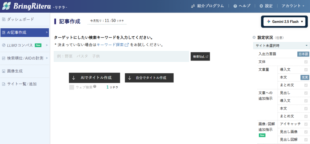 「リテラ」は、SEOコンサル会社が開発したAIライティングに特化したツールです。