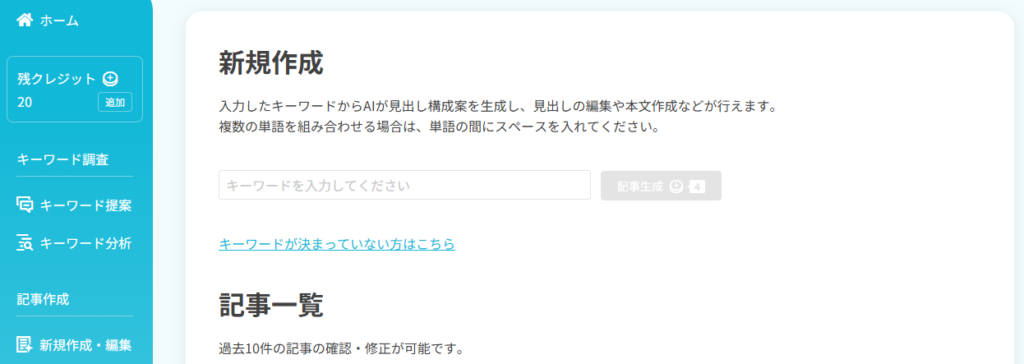 ワークフロー形式ではなく、キーワードからワンクリックで記事を作成できます。