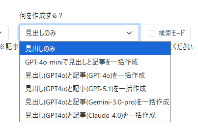 「見出しのみ」を作成するか、もしくは「見出しと記事の両方」を作成するか選択できます。