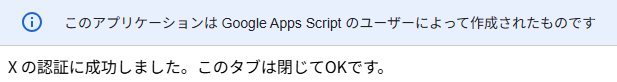 Xへのアクセス許可を行った後でも、トークンが間違っている、またはApps Scriptの保存がされていないと認証に失敗します。すべてのキーやトークンを再確認してください。